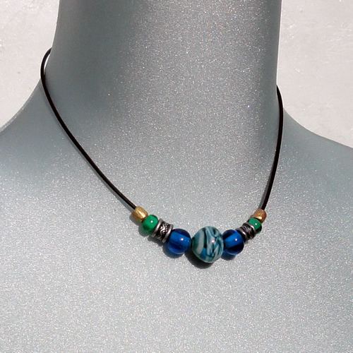 ネックレス(トンボ玉・玉5他金属)[20005]
